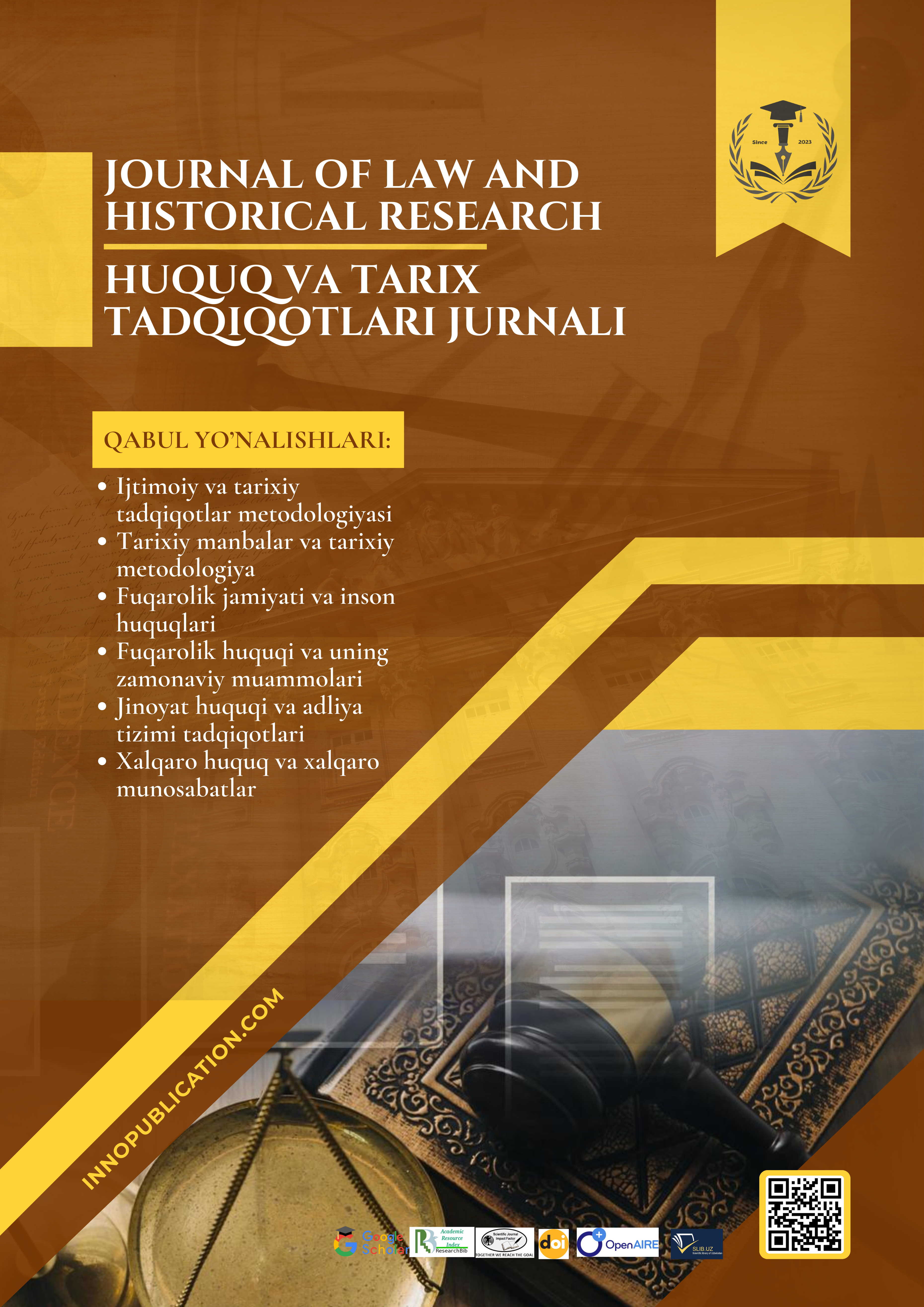 The Journal of Law and Historical Research - is a monthly, peer-reviewed, open-access journal covering legal studies, history, and related interdisciplinary research. It publishes original research articles, reviews, and methodological works. All submissions are evaluated through a double-blind peer review process, ensuring academic integrity and ethical compliance.